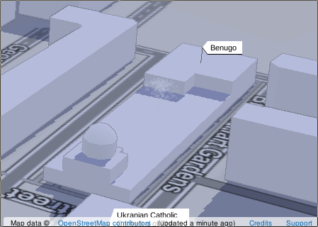 The gardens, new café, and the "Duke Street Electricity Substation" that lays underneath were not mapped at all, and of course I could not let that be. From photos and memory, I re-created the gardens in JOSM, my preferred OpenStreetMap editor and now it is available on the map — including the steps and the elevator: