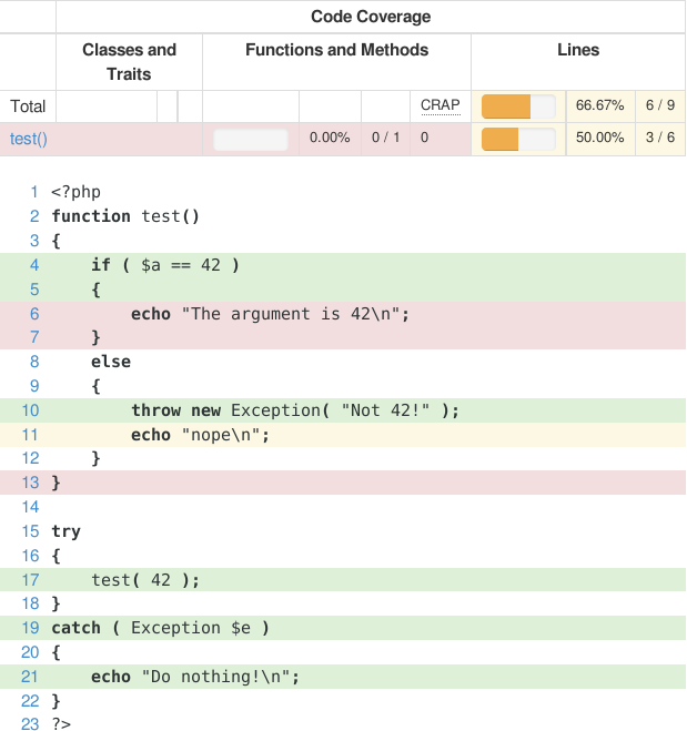 This concludes the current code coverage features in Xdebug, in the second part I will cover an upcoming feature.