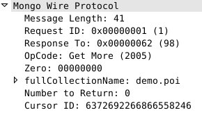 We have now come to the end of the article on MongoDB's cursors. All the screenshots of the packets on the wire were made with WireShark, which has support for the MongoDB wire protocol. You can read more about the wire protocol at http://www.mongodb.org/display/DOCS/Mongo+Wire+Protocol; but this is often not something you should have to be concerned about. Just to sum things up: