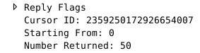 The Cursor ID is 0 in the reply, meaning that there is no cursor to fetch further documents.