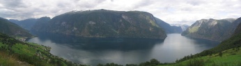 The E16 between Sogndal and Bergen features two of the longest tunnels in Norway, the 24.51 km long tunnel from Lærdal to Aurland and the 11.4 km long Gudvangentunnel. We decided to skip the longest tunnel because spending 20 minutes under ground did not appeal us; instead we took the "old" road over the mountain which presented us with spectacular views of the Aurlandsfjord. Instead of continuing the E16 after Voss we made another de-tour that brought us past the Hardanger fjord which also featured another section with countless hairpin bends on the road.