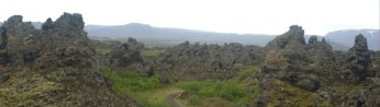 On our last day on the North side of the country we again traveled to the Myvatn area to see Dimmuborgir, the black castles. However before we went there we tried to have a look at some intersting lava pillars that can be found just inside the lake. It is quite obvious why the name of the lake is Myvatn (Mosquito lake) as the were literally swarms of mosquitoes attacking us as soon as we got out of the car. Even at the Dimmuborgir site the mosquitoes were quite persistent however not as bad as closer to the lake. Dimmuborgir has some intersting formations of lava resembling buildings and even a church. On the way back we also visited the Laufás farm museum which has some restored old homes.