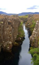 930. The parliament was build on a site called Þingvellír which is now part of a national park. Besides the site of the former parliament the general landscape is also quite interesting as well as there is a massive lava ridge cutting across the landscape there as well as some water filled gorges and (ofcourse) a waterfall. From Þingvellír we avoided the ring road on the way back to Reykjavik and instead took some road closer to the south of the country. Little did we know as suddendly the road turned into a gravel road which we had to follow for the next, say, 50 kilometers. The road did however pass an interesting site with lots of water coming up from the ground in bright coloured mud pools.