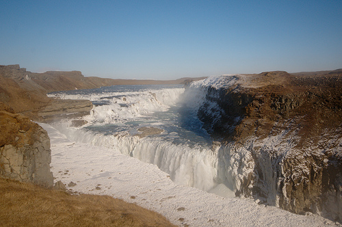Our next stop was Gullfoss, a waterfall in the river Hvítá. I had visited Gullfoss in summer many many years ago and this trip's experience was quite different. It was so increadible windy and cold that we could hardly make it to view the waterfall. However, with the ice surrounding it it was quite beautiful: