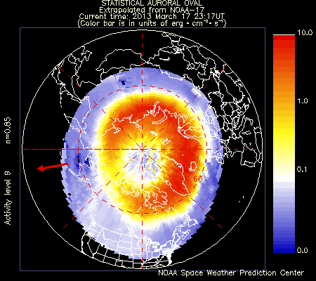 Aurora gets more intense, and is visible on lower latitudes, when a geomagnetic storm is in progress. One of their causes is a coronal mass ejection (CME) on the Sun which sends huge quantities of matter and electromagnetic radiation out into space. When CMEs are directed towards Earth they cause a geomagnetic storm which increases the change of Aurora Borealis to occur.