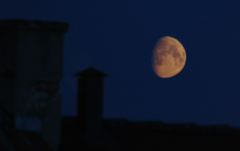 When I had to go to the toilet this night at 5am, I noticed a very red moon that was about to set behind the roof tops. I quickly took some shots - unfortunately none of them are very sharp - I really need to get some decent equipment for this :).