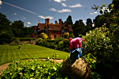 We turned into the woods—infested with mosquitoes as my legs now show—along the ditch. I made a small navigational error and instead of going past Gilbert's Lake, we ended up at his mansion! The house was not built for W.S. Gilbert, but he lived there the last two decades of his life. The elephpants thought it beautiful too. We walked back along the lake and through some woods with only a little bit of mud. When coming out of the woods we hit to top of Grim's Dyke with excellent views over central London. Not much after that, we stopped for a quick pint at The Case is Altered, probably the pub with the weirdest name I've been at.