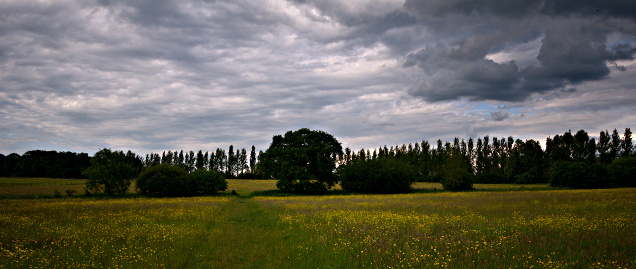 We crossed through a field, and under the West Coast Main Line towards Little Oxhey Road. After following this road for a bit we crossed a major road into a field with scary looking Keep Out signs on the right. Not sure why we would be at that side of the massively broken barb wire fence anyway, as there were only nettles and brambles. We walked past the Grims Dyke Golf Club and came upon a marker explaining about Grim's Ditch (or Grim's Dyke), an ancient earthwork.