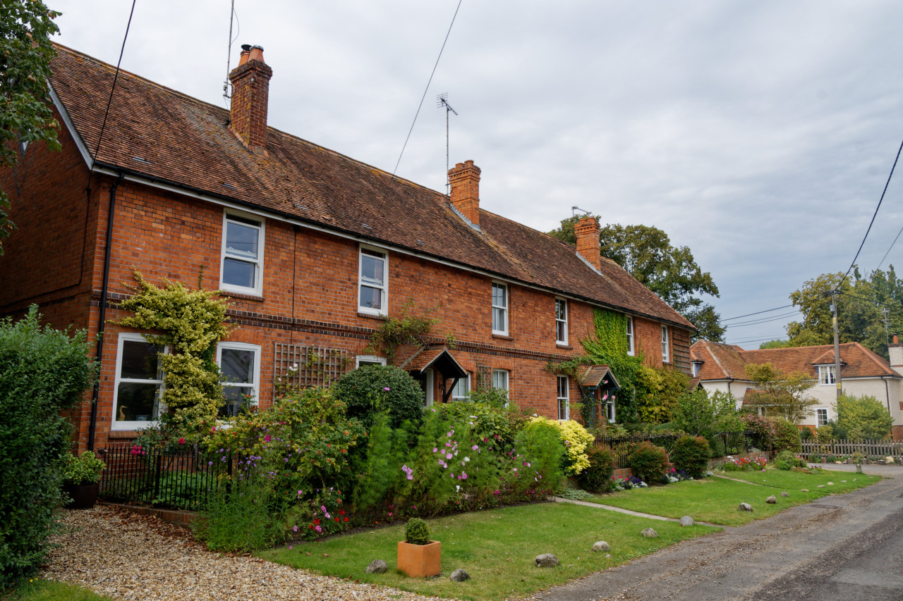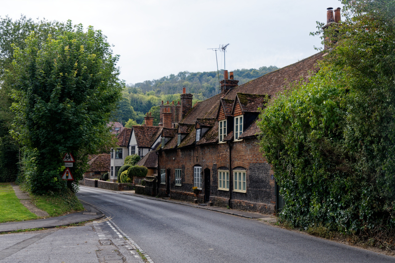 After a section through a lane of very green trees, I ended up on a road with a mansion, a golf course, and finally, the outskirts of Streatley. The closer to the village, the more traffic there was. At some point, a very narrow pavement appeared before getting to the High Street with a lovely row of brick buildings.