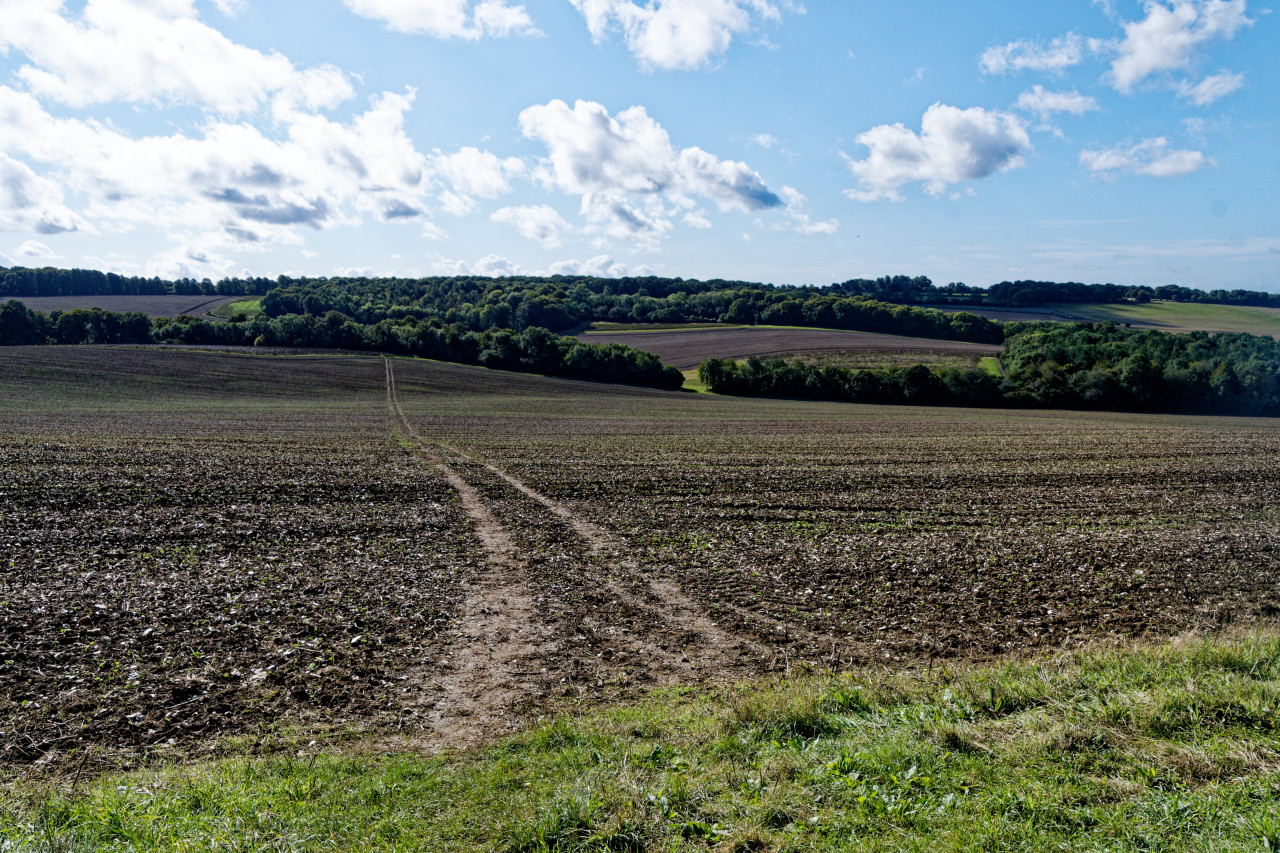 The route continued down a path through a freshly harvested field before becoming steep on the way to Ewelme Park. The view towards where I came from was fantastic.
