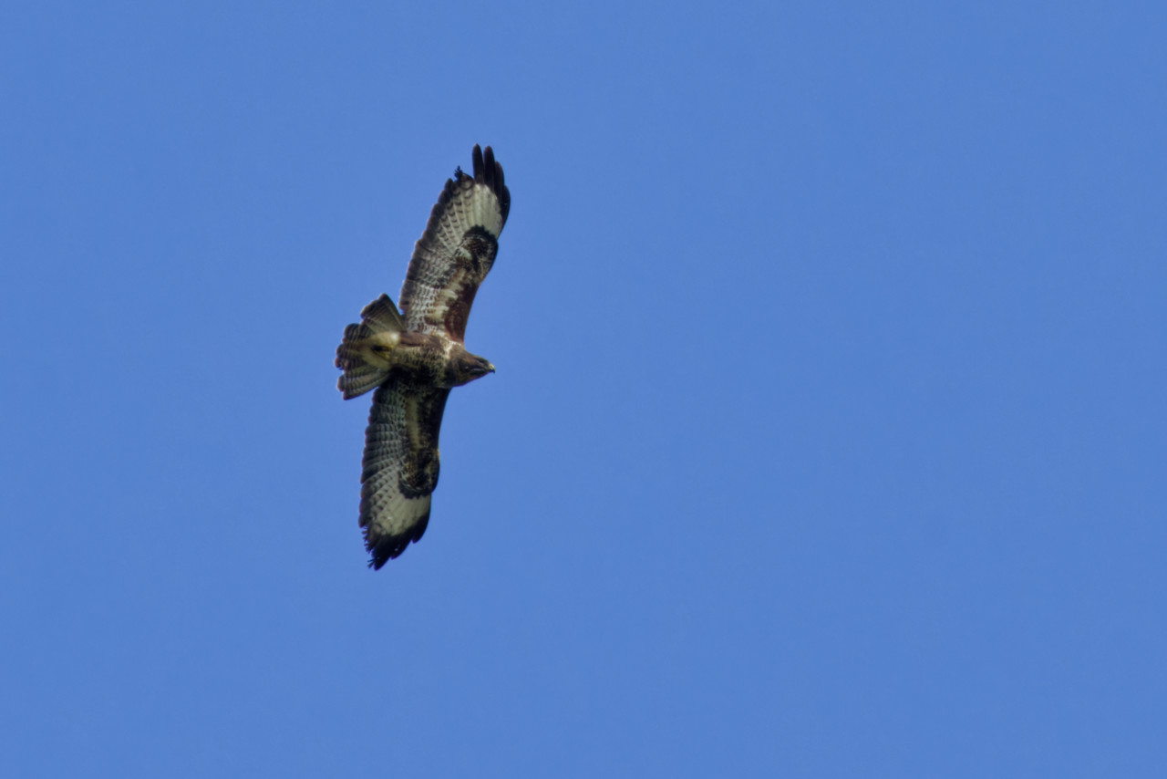 Thankfully, the section along the road was short, and I soon found myself on a quiet gravel path. Annoyingly, it was on an incline, but that did not stop me from enjoying myself. Like me, a buzzard was following the edge of a field towards the foot of Brush Hill.