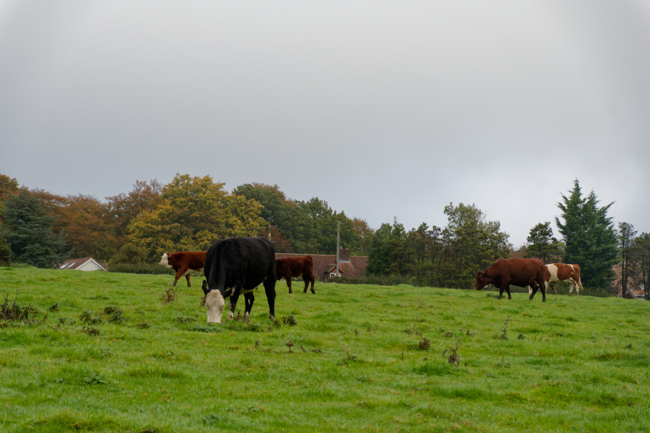 Unfortunately, halfway across these fields, on the other side of a gate and fence, a herd of cows was on its way to block my path. As I mentioned, I am not a fan of national paths going through fields with cows. Therefore, I decided to backtrack and walk around the farm.